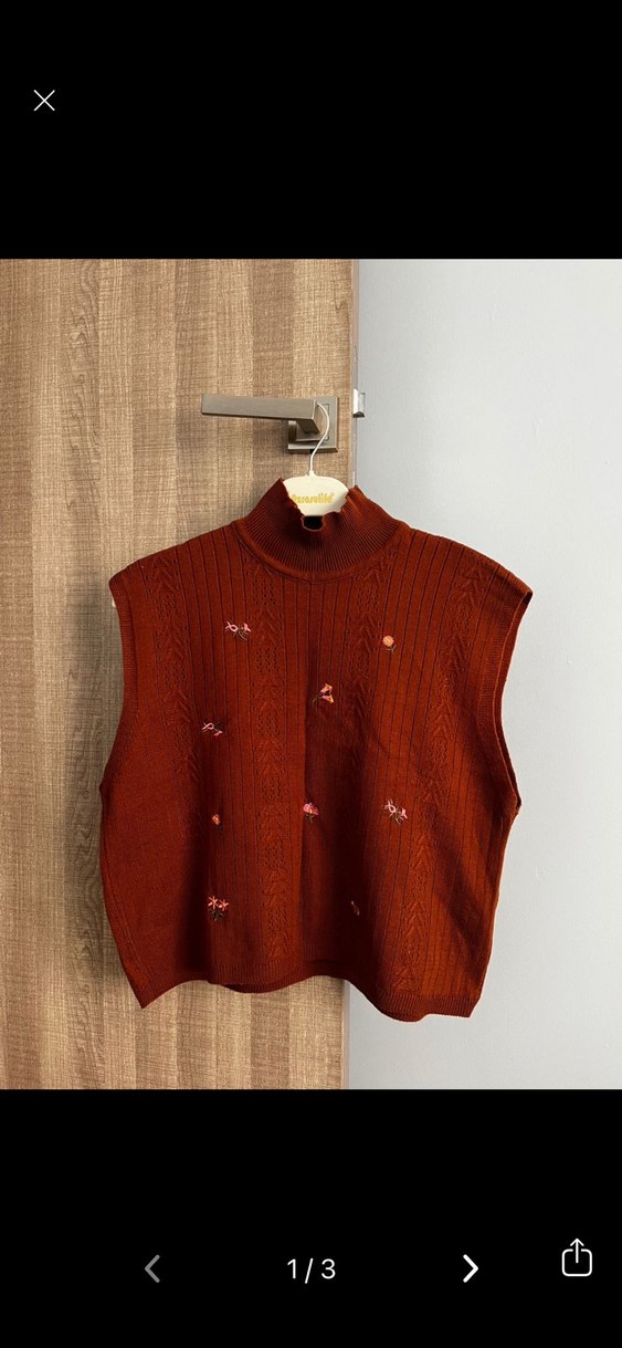 Bohem Nakışlı Kahverengi Kolsuz Triko Süveter