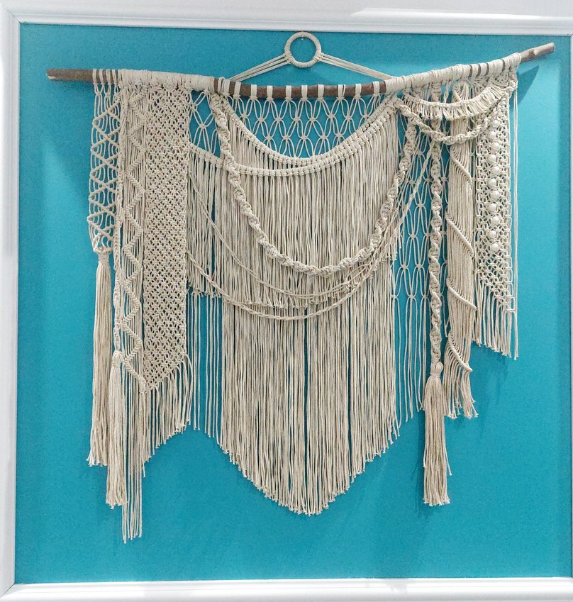 Bohem Nakışlı makrome Beyaz duvar süsü