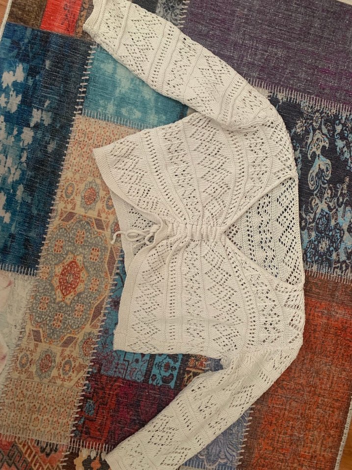 Bohem Nakışlı Örgü Uzun Kollu Straplez crop triko Kazak