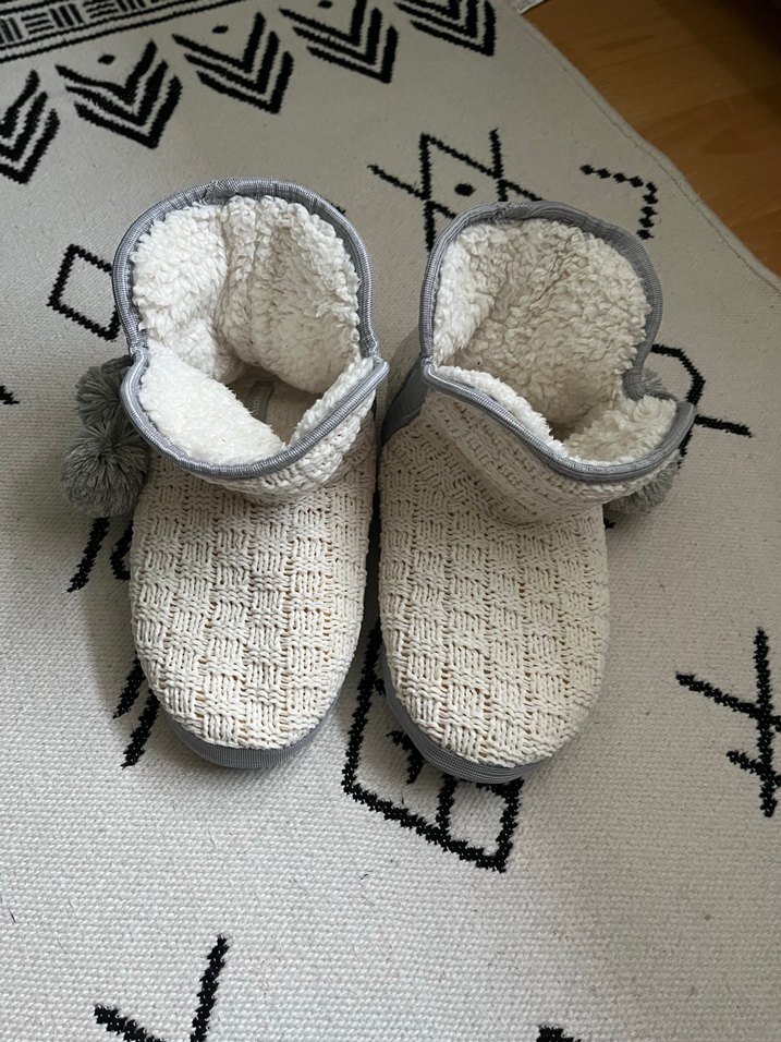 Yumuşak iç astarlı, bohem tarzda nakışlı örgü kumaştan, beyaz ve gri renklerde.