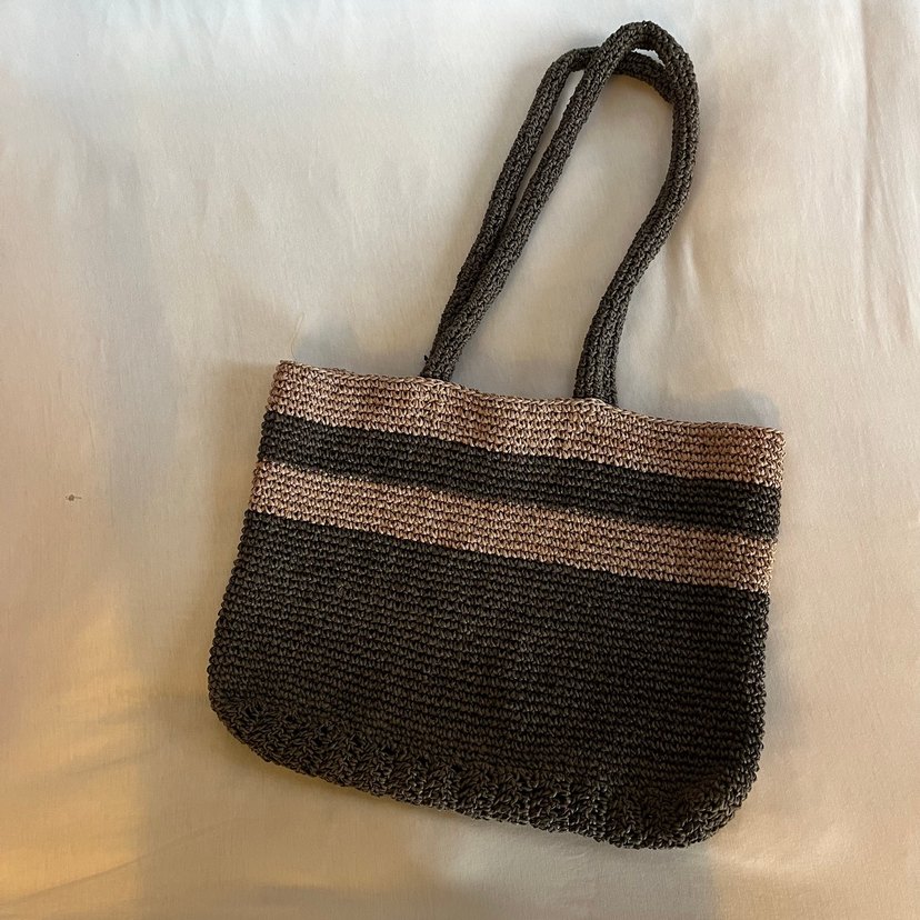 Bohem tarzda, gri ve kahverengi tonlarında örgü kadın çanta. El yapımı