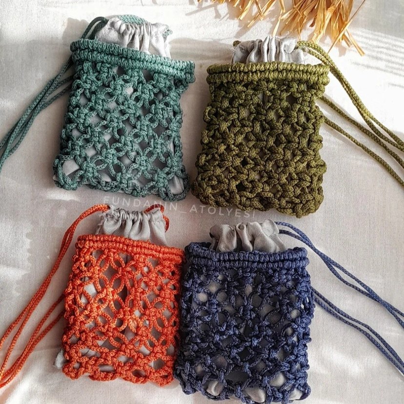 adet fiyatıdır. Yeşil, zeytin, turuncu ve lacivert renklerde, yumuşak astarlı ve detaylı örgü desenli dört bohem ipli mini keseler. Airpot icin, kulaklik icin,altin koymsk icin keseler