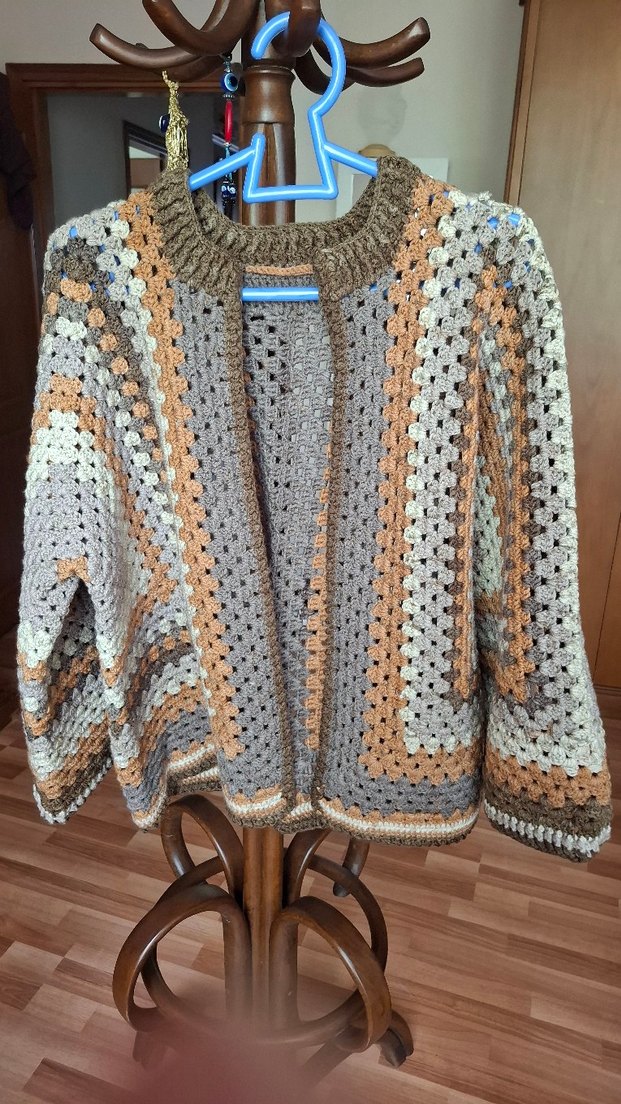 44 -46 - 48 bedene rahatca olur. el emegimdir. altigen hirka. Bohem tarzda, uzun kollu ve yuvarlak yakalı örgü kadın hırka. Gri ve kahverengi çizgili, bol kesim ve midi boyda, yumuşak örgü kumaştan üretilmiştir.