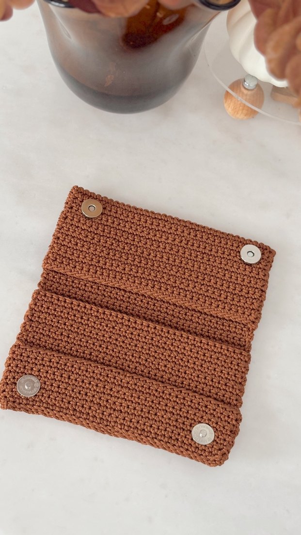 Bu kahverengi örgü kadın portföy çanta, manyetik çıtçıt kapamalı sade ve desensiz tasarıma sahiptir. Yumuşak örgü kumaştan yapılmıştır, bohem tarzda rahat bir görünüm sunar.