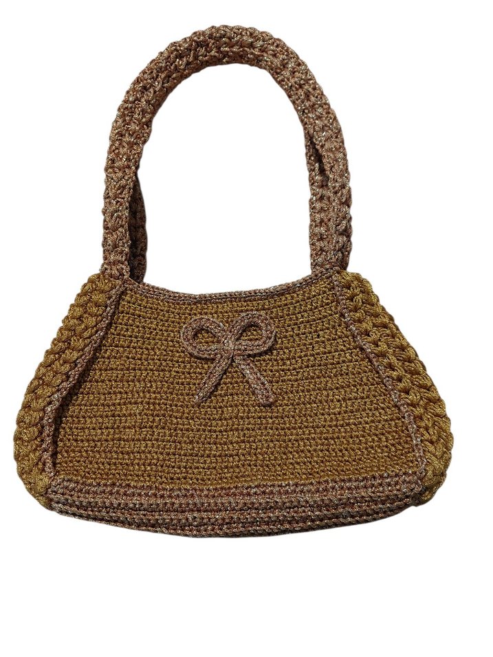 Kahverengi el örmesi fiyonk detaylı bohem tarzda kadın çanta. Günlük kullanıma uygun, rahat ve retro havasında.