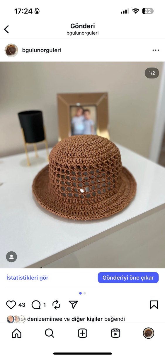 Hafif kahverengi, örgü bohem tarzda kadın şapka, rahat ve retro hippie görünüm için açık örgü detaylıdır.