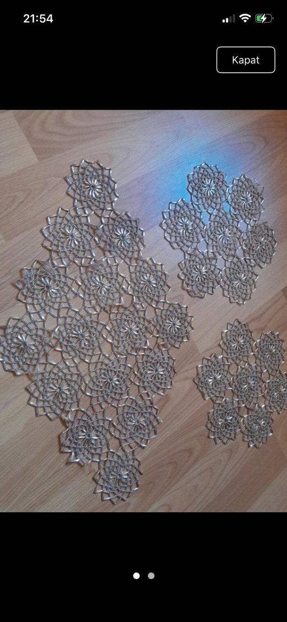 El yapımı, bohem tarzda örgü motiflere sahip masa örtüleri, dekorunuza doğal bir dokunuş katar.