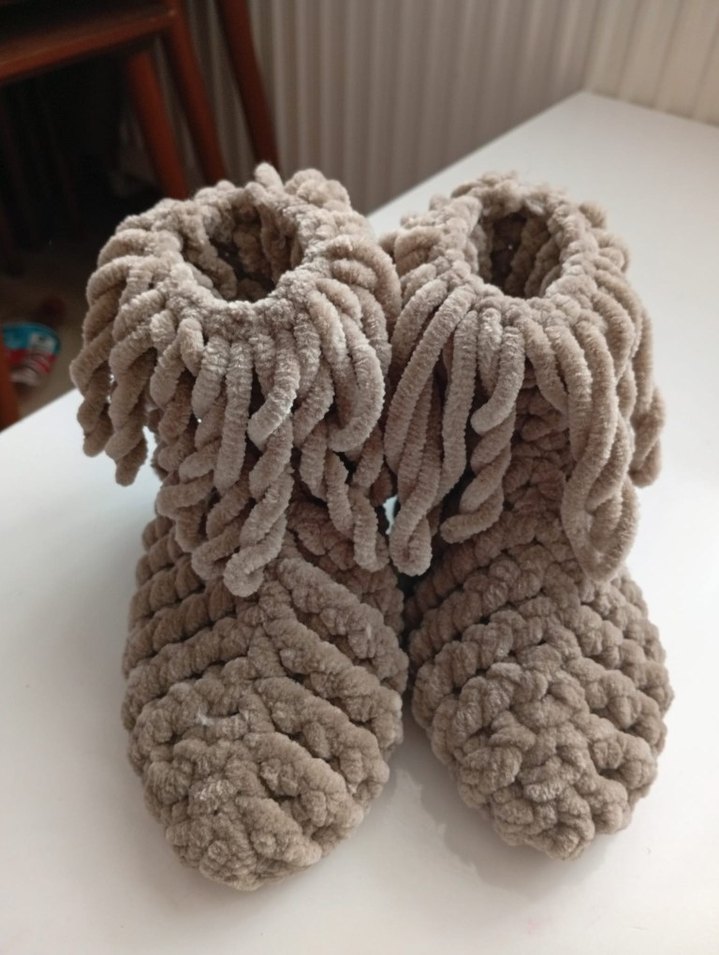 Bej renkli, kızlar için örgü sıcak terlikler, bohem tarzıyla dikkat çeker ve rahat iç mekan kullanımı için uygundur.
