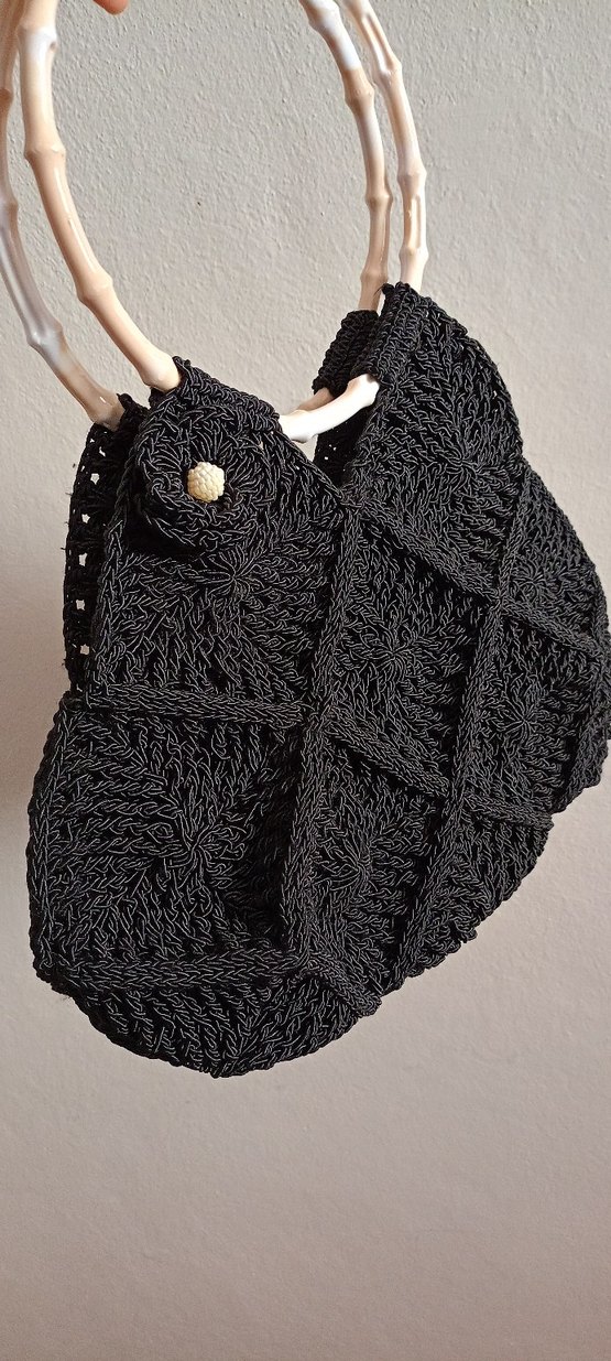 Bu siyah kadın çantası, bohem desenli örgü dokusuyla günlük kullanıma uygundur. Eşsiz örgü stili retro ve hippie havası katar.