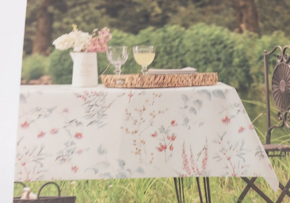Bu beyaz masa örtüsü, pastel renklerde bohem tarzda çiçek desenlerine sahiptir. Masanıza yumuşak ve doğal bir hava katar.