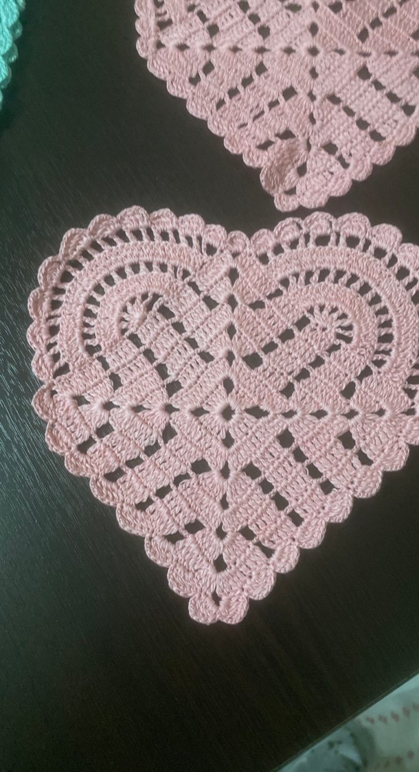 Bohem tarzda, pembe renkte kalp şeklinde el örgüsü dantel, kahve sunum peçetesi fiyat iki tane için geçerlidir