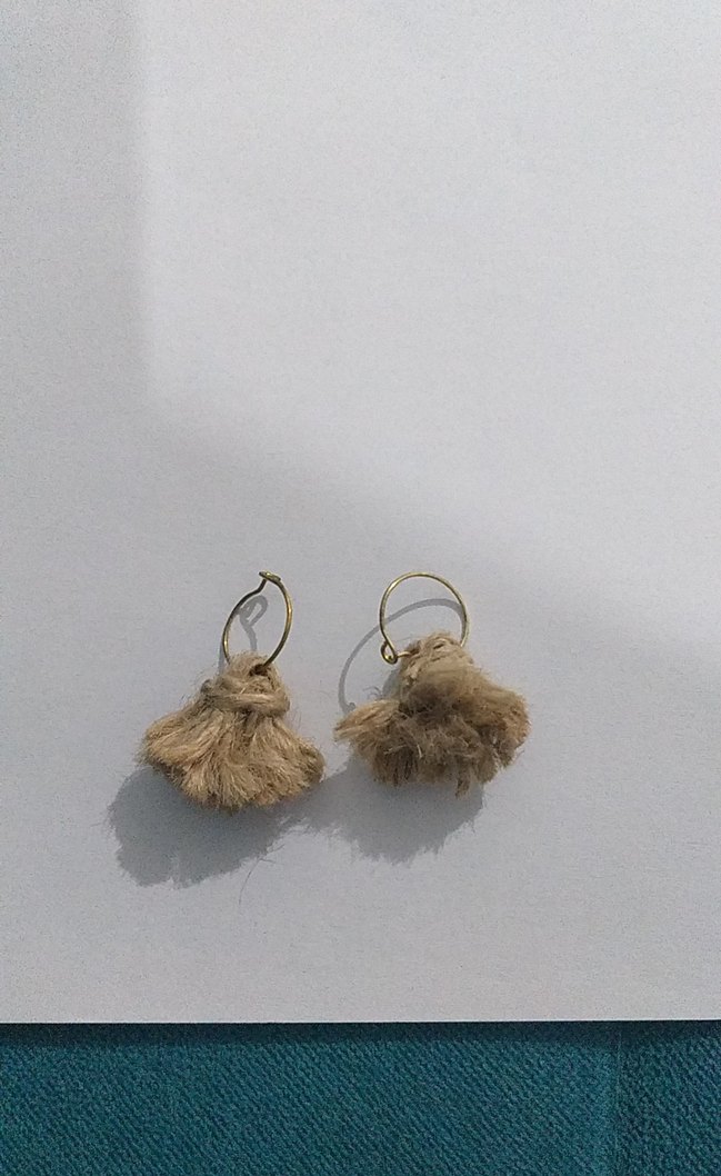 Bohem handmade camel renkli püskül küpe. Plaj şıklığı.