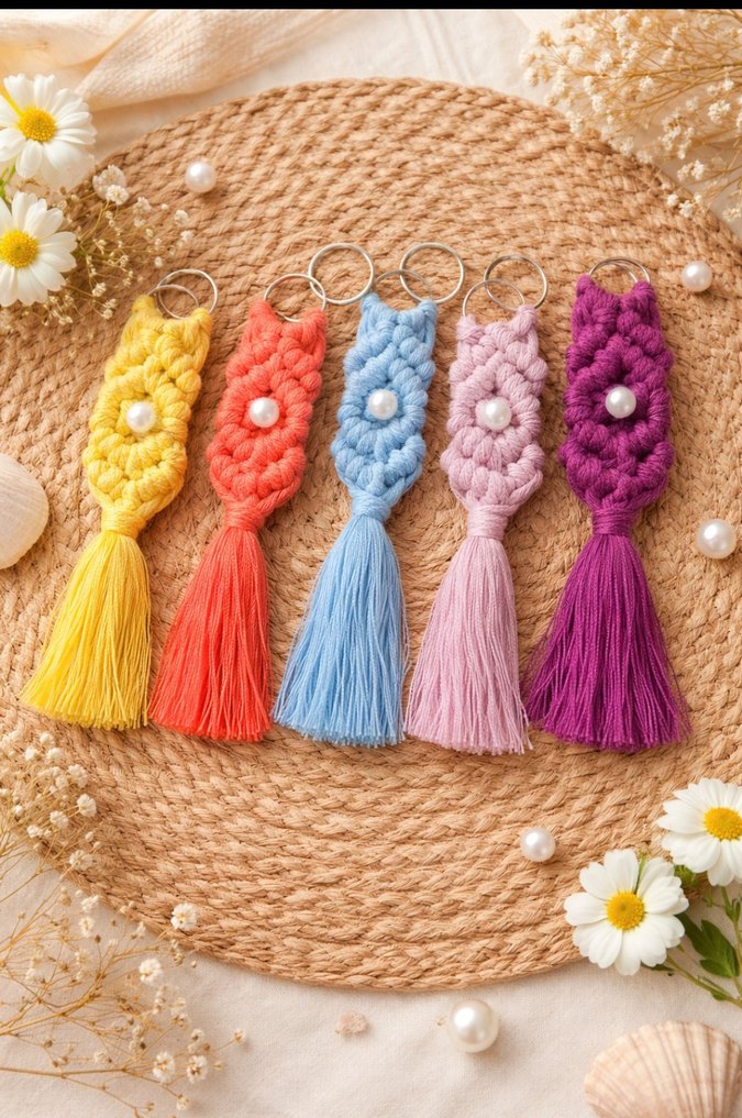 Bu bohem tarz anahtarlık, inci detaylı pastel renklerde püsküllere sahiptir. Fiyatı 4 TL.
