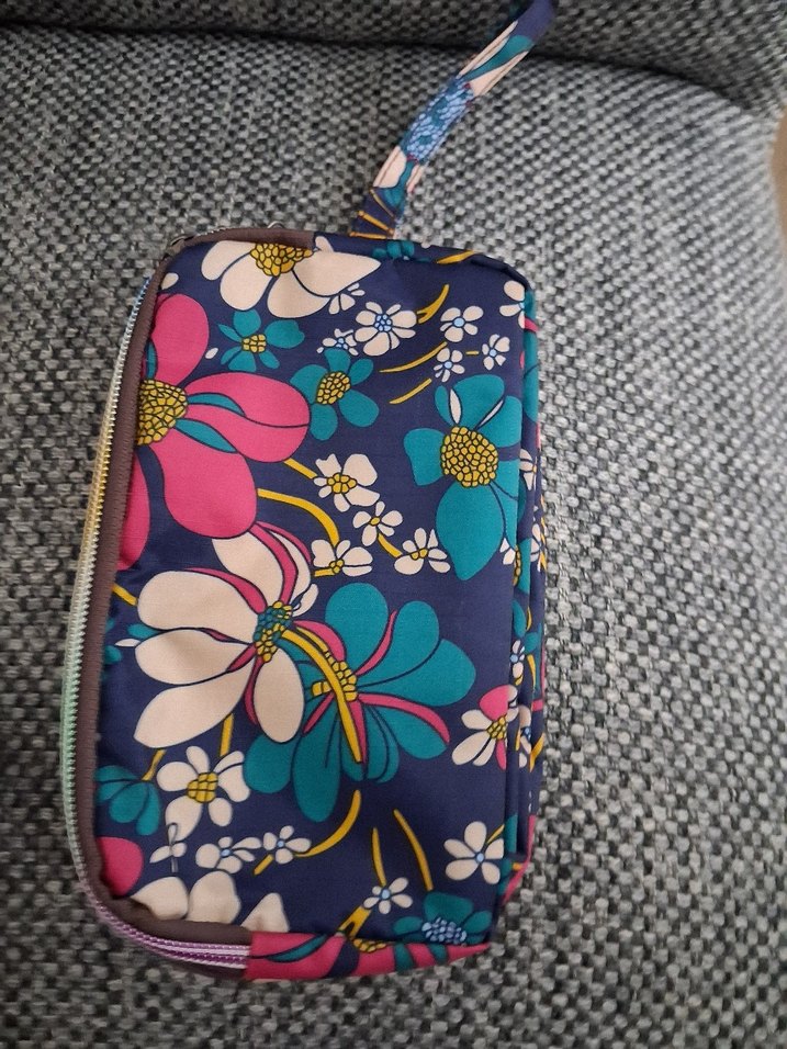 Bohem tarzda, renkli çiçek desenli, fermuarlı makyaj çantası. Sentetik kumaştan yapılmış, günlük kullanıma uygun canlı tasarıma sahip.temiz problemsiz ölçüleri fotoğraglarda #makyajçantası