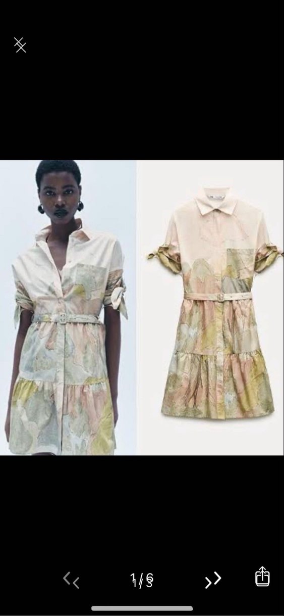 Bohem tarzda, yakalı ve kısa fırfırlı kollu, bol kesim, pastel tonlarda batik desenli mini elbise. Bel kemeri ve tekstil kumaştan, günlük kullanım için uygun.