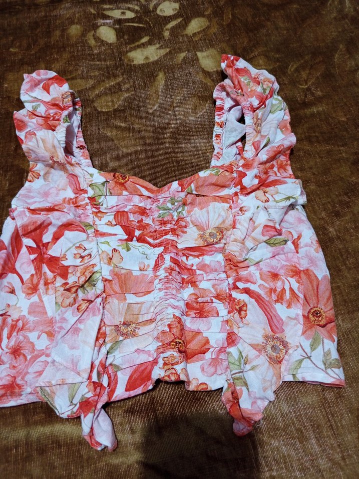 Kolsuz, straplez bohem bluz, fırfır detaylı ve bol kesimlidir. Pastel çok renkli batik desenli, kısa ve rahat bir stildir.