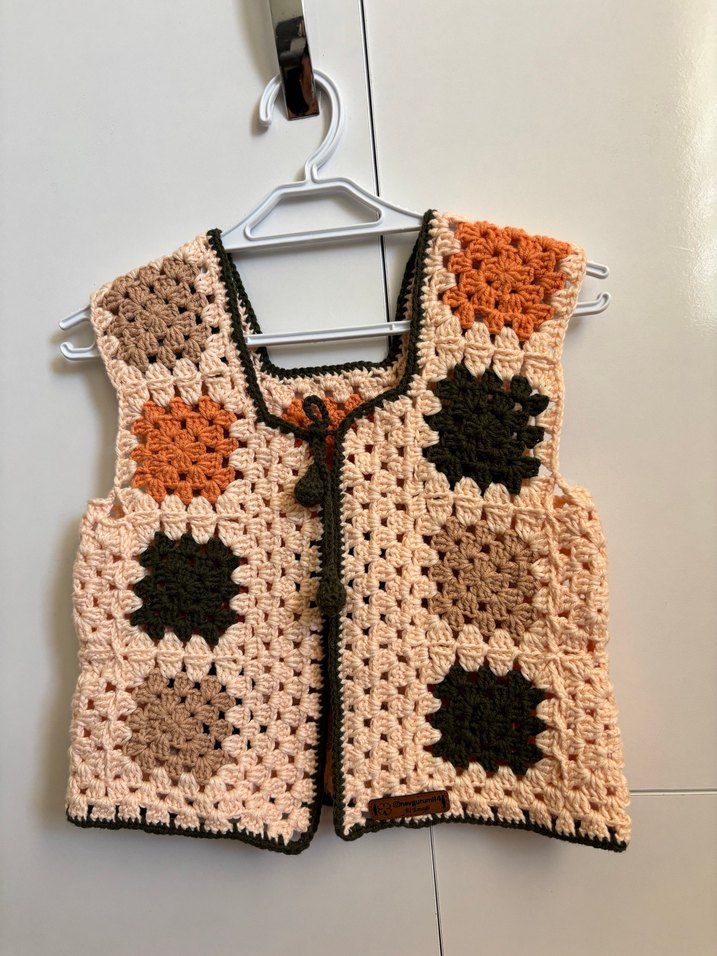 Kolsuz, bol kesim ve yuvarlak yakalı bu örgü yelek, pastel çok renkli ve bohem tarzda, günlük kullanıma uygun.