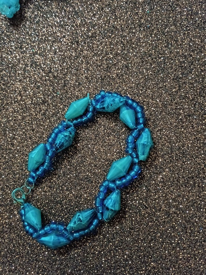 Günlük kullanıma uygun, yılan desenli uzun turkuaz boncuklu, renkli bohem tarzda kadın bileklik