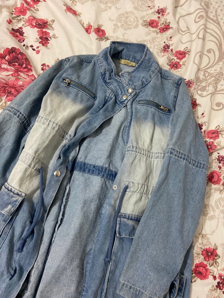 Mavi denim, bol kesim ve düğmeli ön kapama ile bohem ve retro tarzı yansıtan ceket. Notlu yakalı ve uzun kollu, günlük kullanıma uygun.