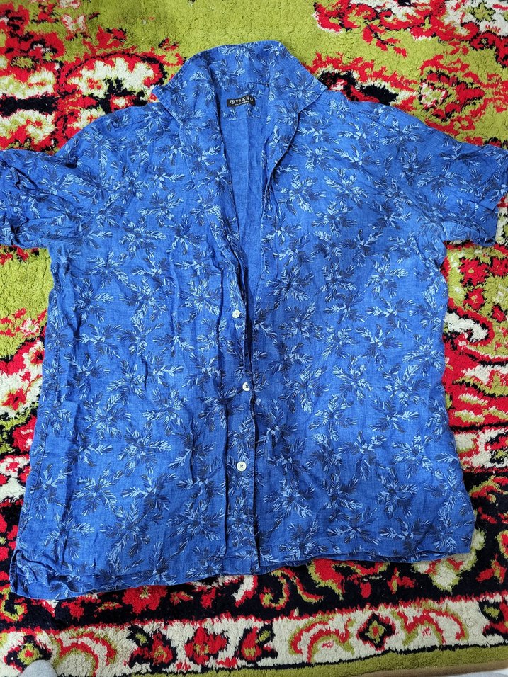 Rahat kesim, kısa kollu ve yakalı nefes alan keten kumaştan üretilmiştir. Canlı mavi batik deseni ve düğmeli tasarımıyla bohem tarzını yansıtır. Günlük kullanım için uygundur.