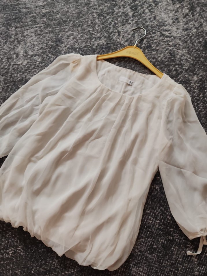Salaş kesim beyaz bluz, uzun kollu ve yuvarlak yakalıdır. Drapeli yapısıyla rahat ve bohem bir tarz sunar. Günlük kullanıma uygundur. İçlikle giyilmesi önerilir.