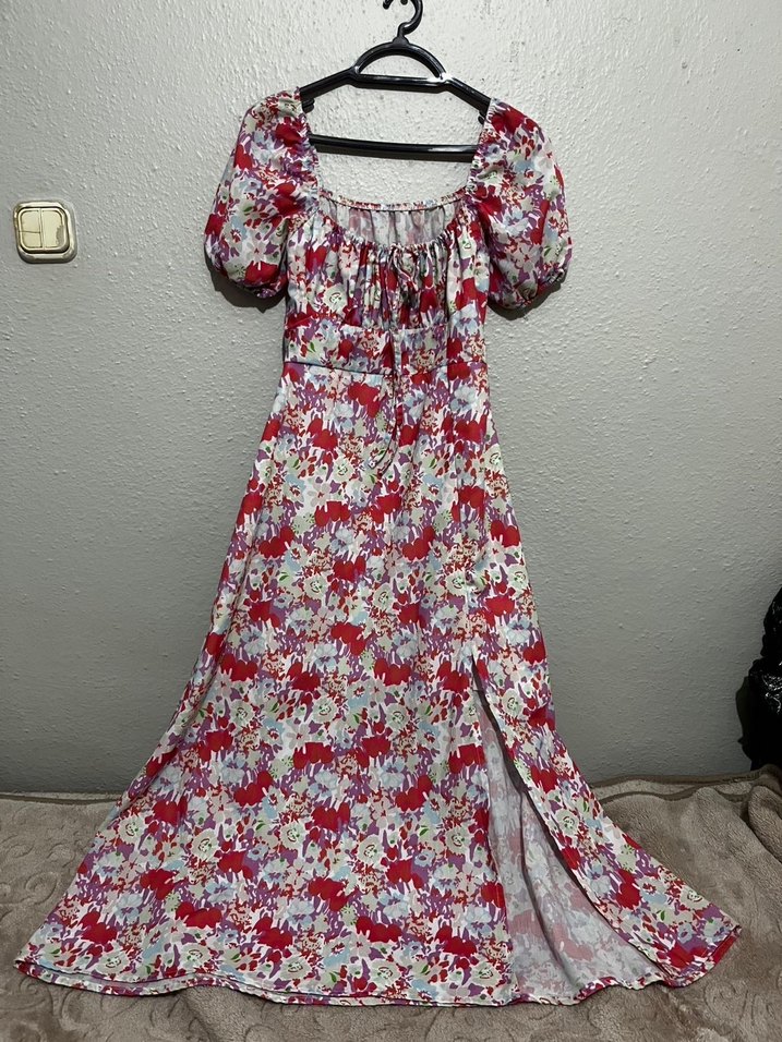 Bohem Salaş Çiçek Desenli Uzun Elbise