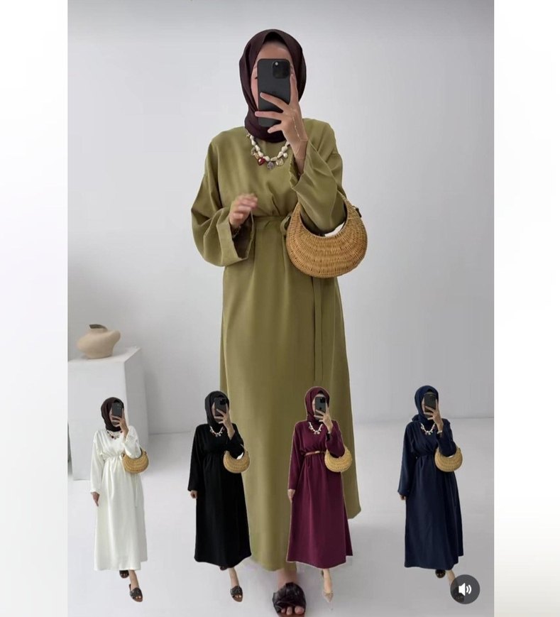 Uzun, salaş kesim elbise, uzun kollu ve yuvarlak yakalıdır. Koyu haki renk ve etnik desenle, günlük kullanımda zahmetsiz şıklık sunar.