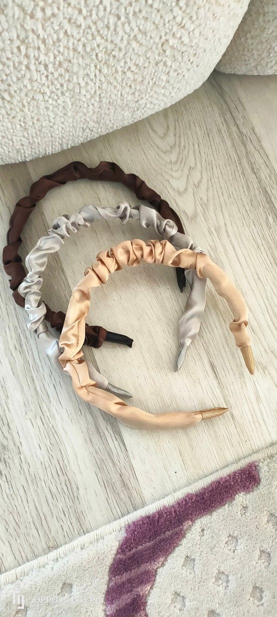 Bohem Şıklığında Bej Saten Saç Bandı 3lü