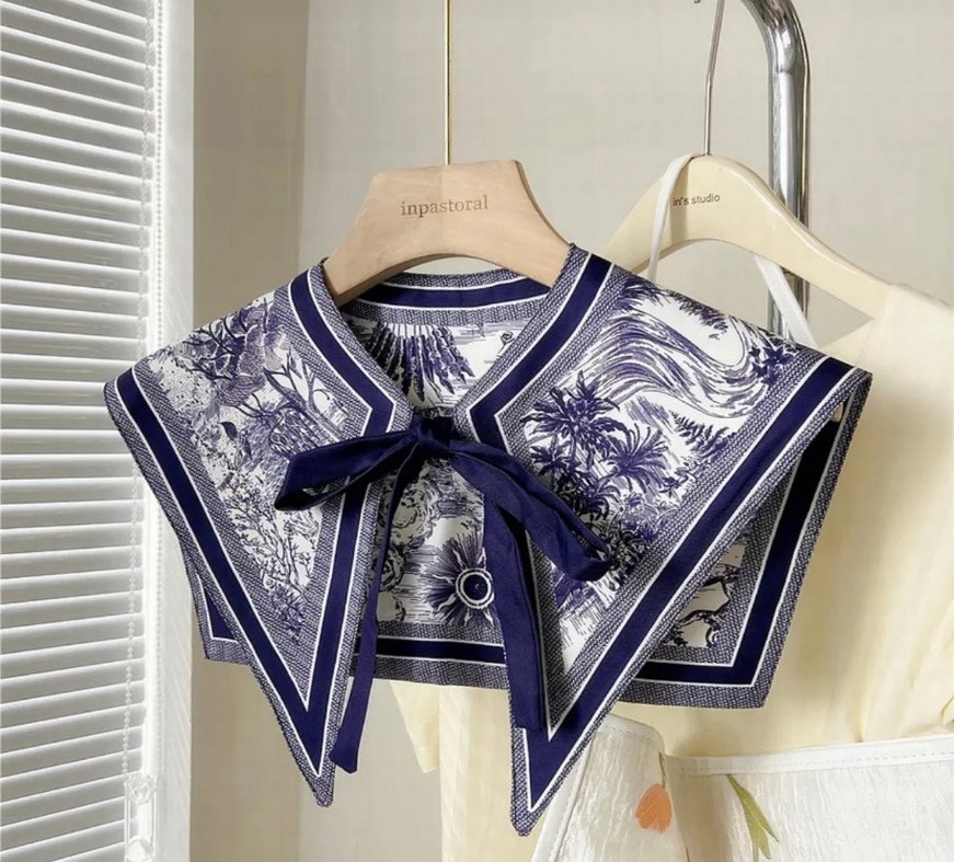 Bohem Şıklığında Lacivert Desenli Kadın Yakalık