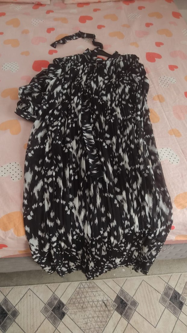 Siyah bağcıklı, pliseli ve tie-dye desenli . uzun kollu, salaş ve bohem tarzda, günlük kullanım için uygun. her bedene olur
