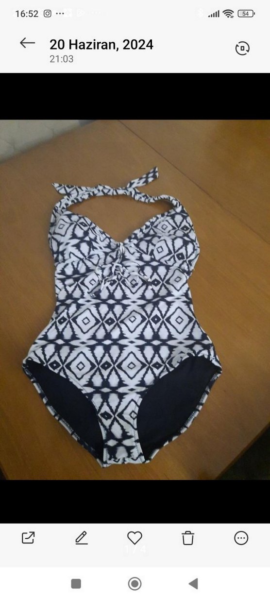 Askılı, siyah beyaz desenli, bohem tarzda, midi uzunlukta ve vücuda oturan kadın mayosu. Plajda rahat şıklık sunar.