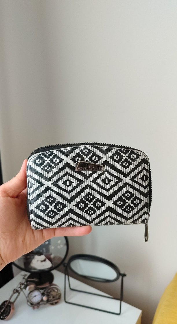 Bohem siyah beyaz Desenli Fermuarlı Kadın Cüzdanı