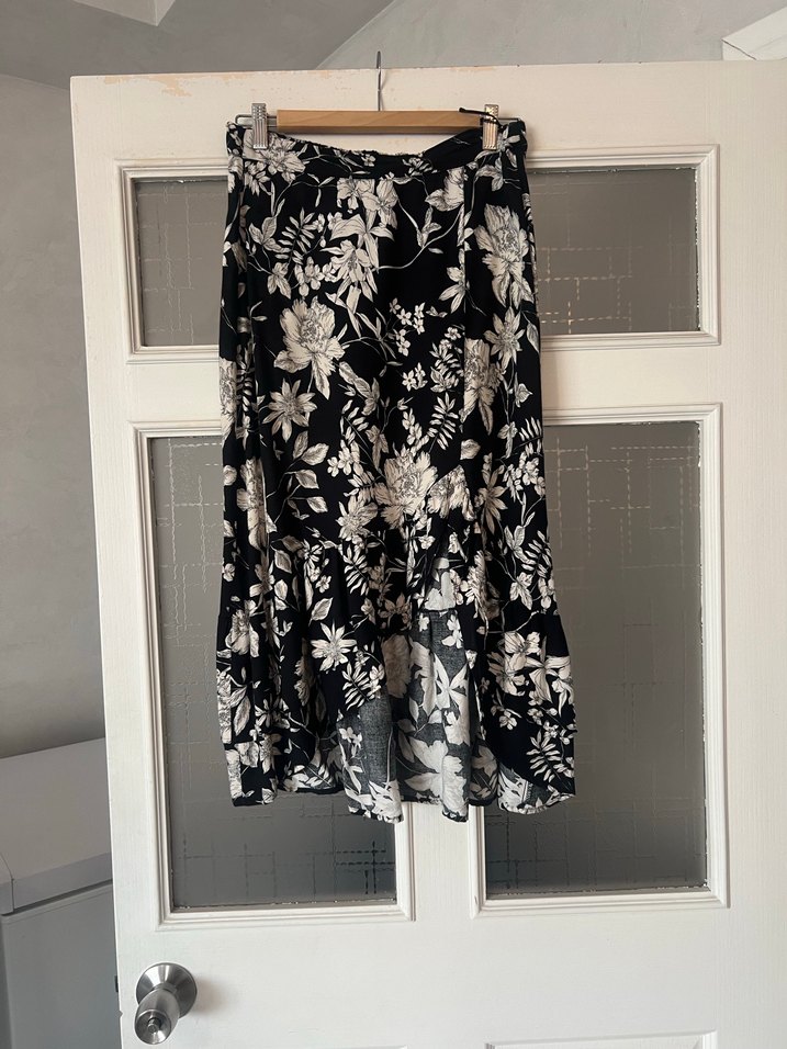 Bohem Siyah Çiçek Desenli Uzun Etek