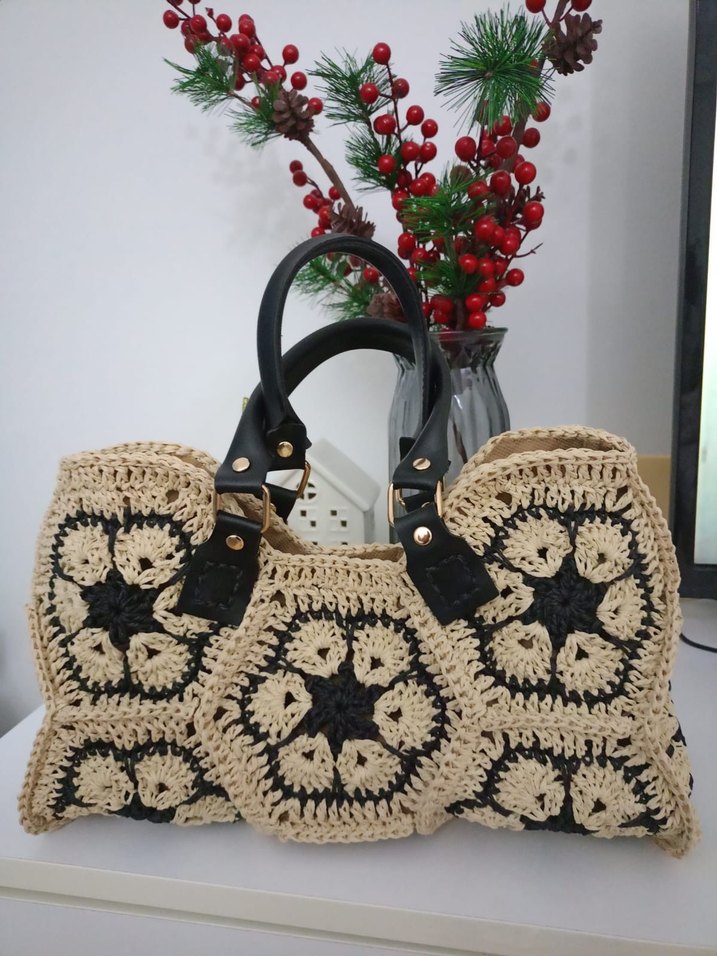 Bohem Siyah Çiçekli Örgü Kadın Çantası