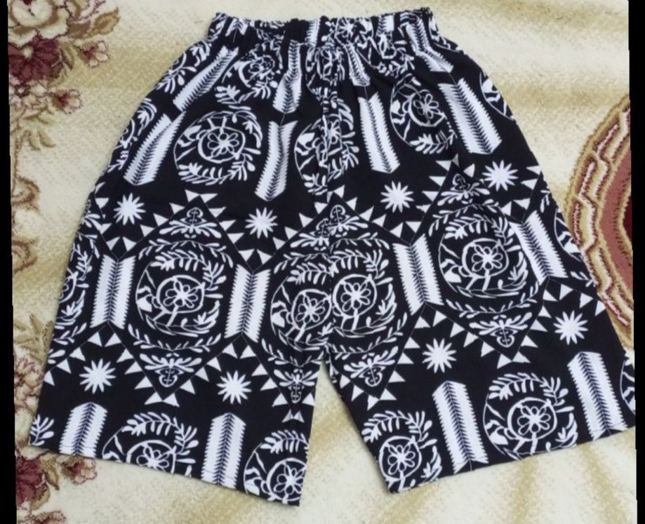Bohem tarzı siyah-beyaz desenli, elastik bel bantlı bol kesim kısa hamile şortu. Günlük kullanım için uygundur.