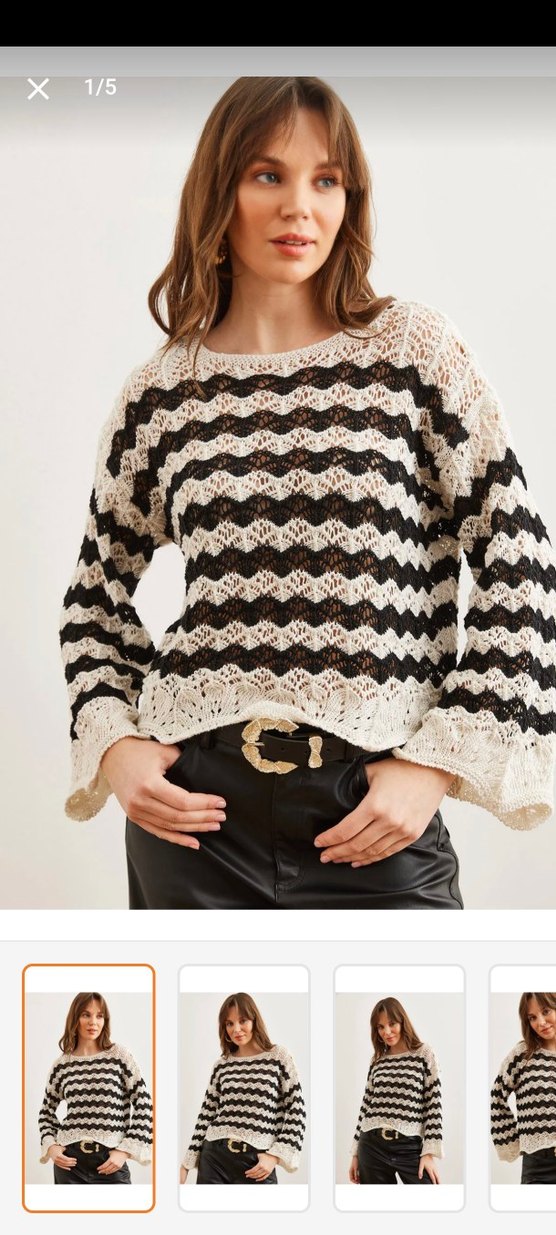Hiç giymedim. Standart beden. Bohem tarzda, siyah beyaz zebra desenli örgü kadın kazak. Rahat kesim, uzun kollu ve yuvarlak yakalı, kısa boyda, yumuşak dokulu.