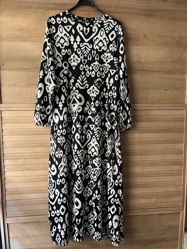 Bohem Siyah Desenli Uzun Elbise