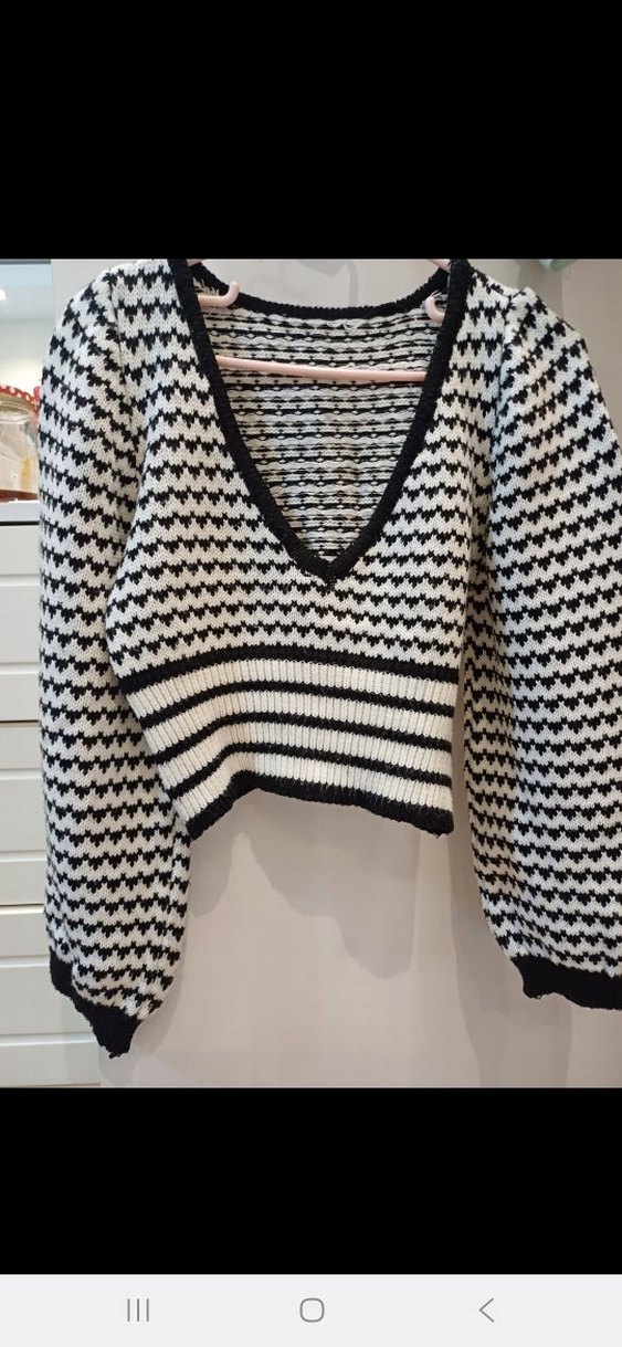 Bohem Siyah Gri Örgü kazak