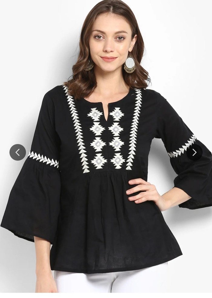 Bohem Siyah Nakışlı Pamuk Bluz