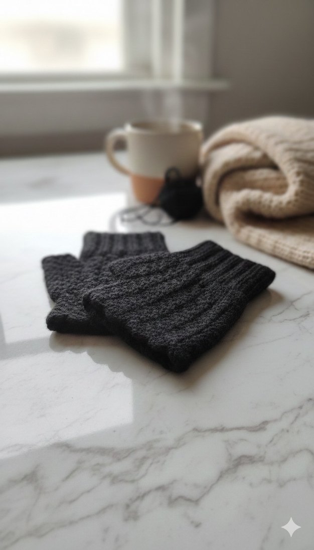 Bohem tarzda, siyah örgü kadın eldiveni, sıcak ve rahat bir dokunuş sağlar.