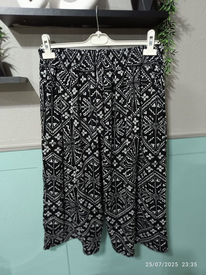 Bohem tarzı, pilili ve bol kesim siyah mini kumaş pantolon, günlük kullanım için uygundur. ✨