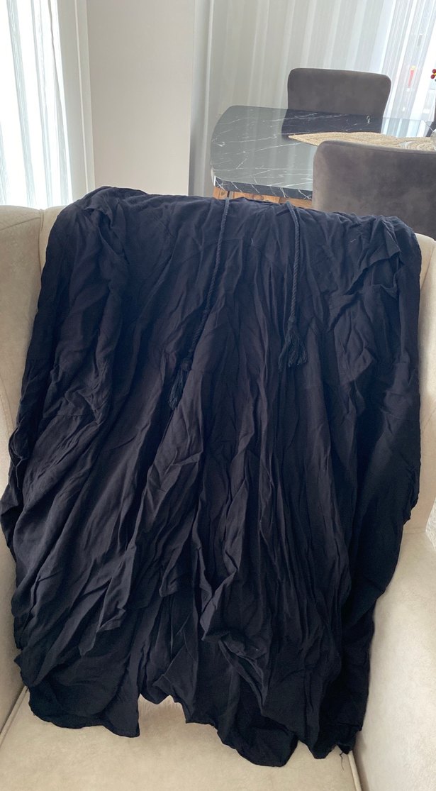 Bohem tarzda, siyah ve desensiz olan bu şalvar etek yumuşak kumaşıyla doğal bir görünüm sağlar. ️