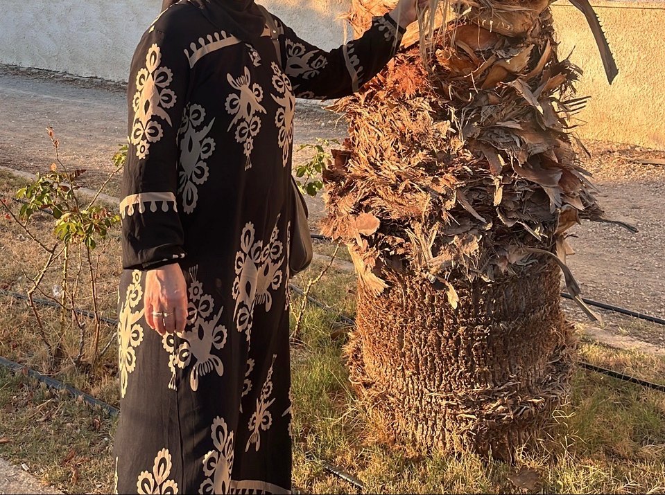 Bohem tarzda, siyah, uzun kollu, yüksek yakalı, salaş kesim elbise. İpek gibi dokusu ve drapeli detaylarıyla dış mekan kullanımına uygundur.