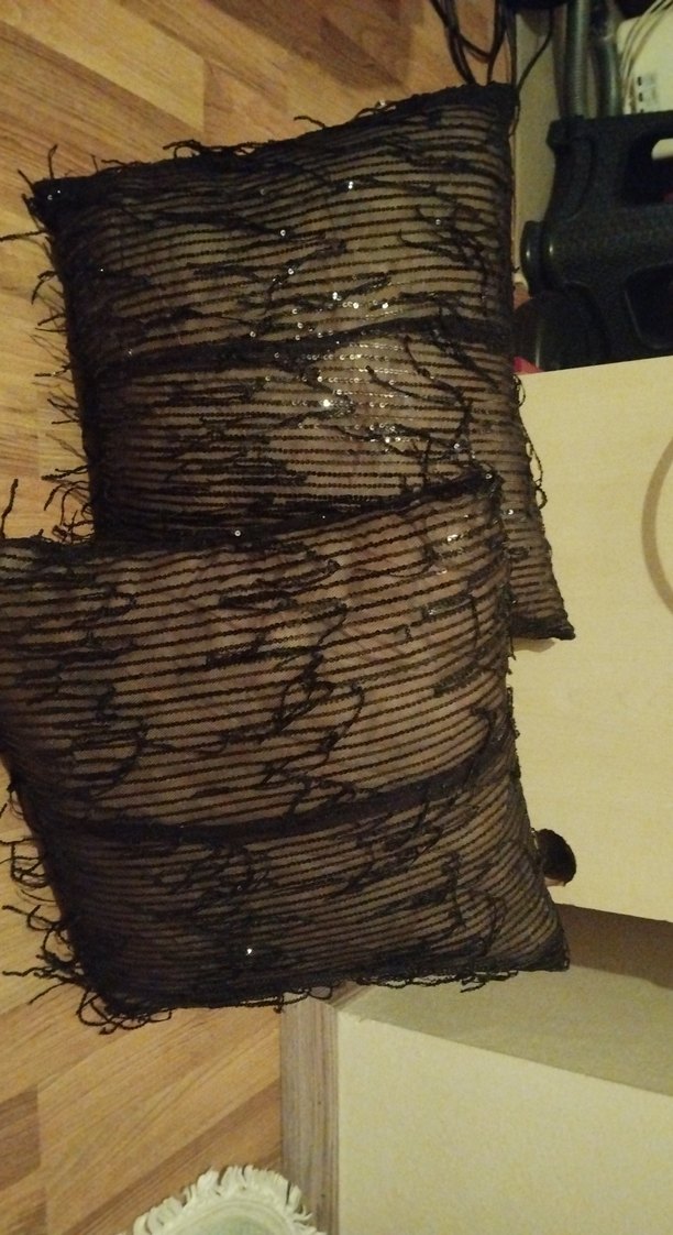 Bohem tarzda siyah, koyu yılan desenli ve dokulu kumaştan kırlent kılıfları. Ev dekoruna farklı bir hava katıyor.
