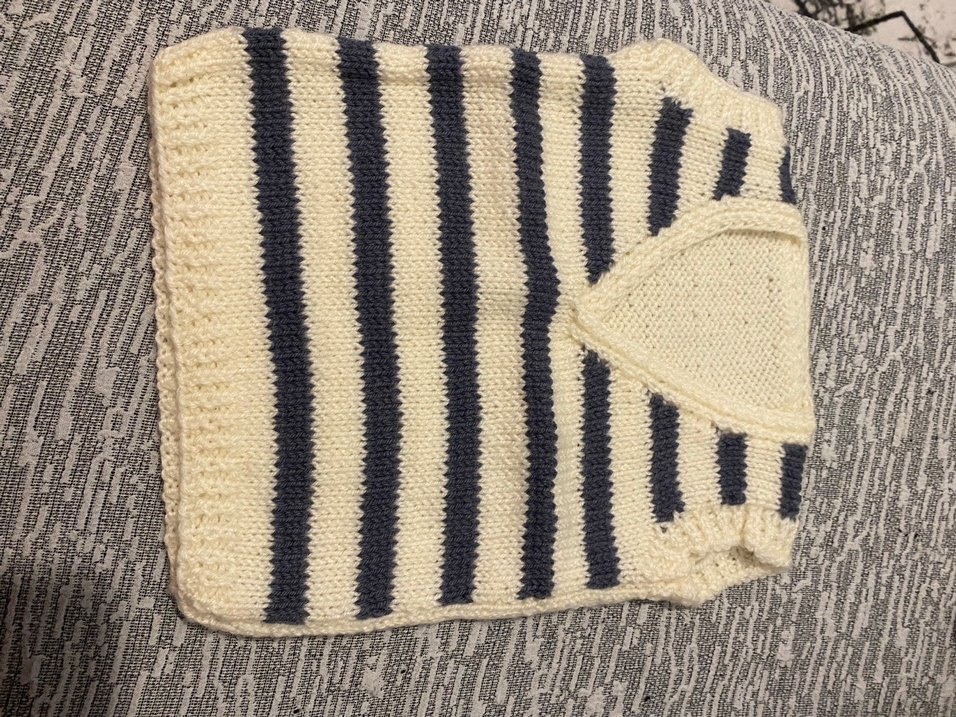 Bohem tarzda, çizgili, triko erkek çocuk kazak. V yaka ve dar kesim ile rahat bir görünüm sunar.