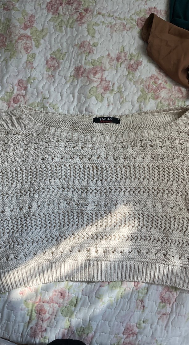 Beyaz, örgü kumaştan yapılmış bu kazak, kayık yaka ve uzun kolludur. Bol kesimi ve bohem tarzıyla günlük kullanıma uygundur. S beden içinde uygundur