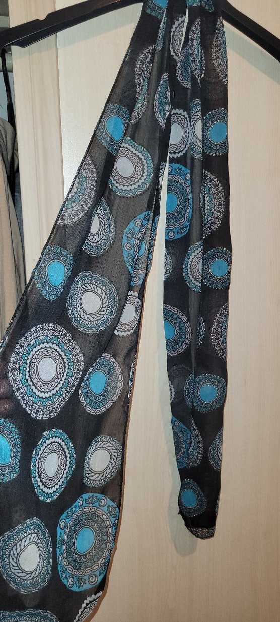 Koyu mavi renkli fular. uzunlugu ve eni 147 ye 19