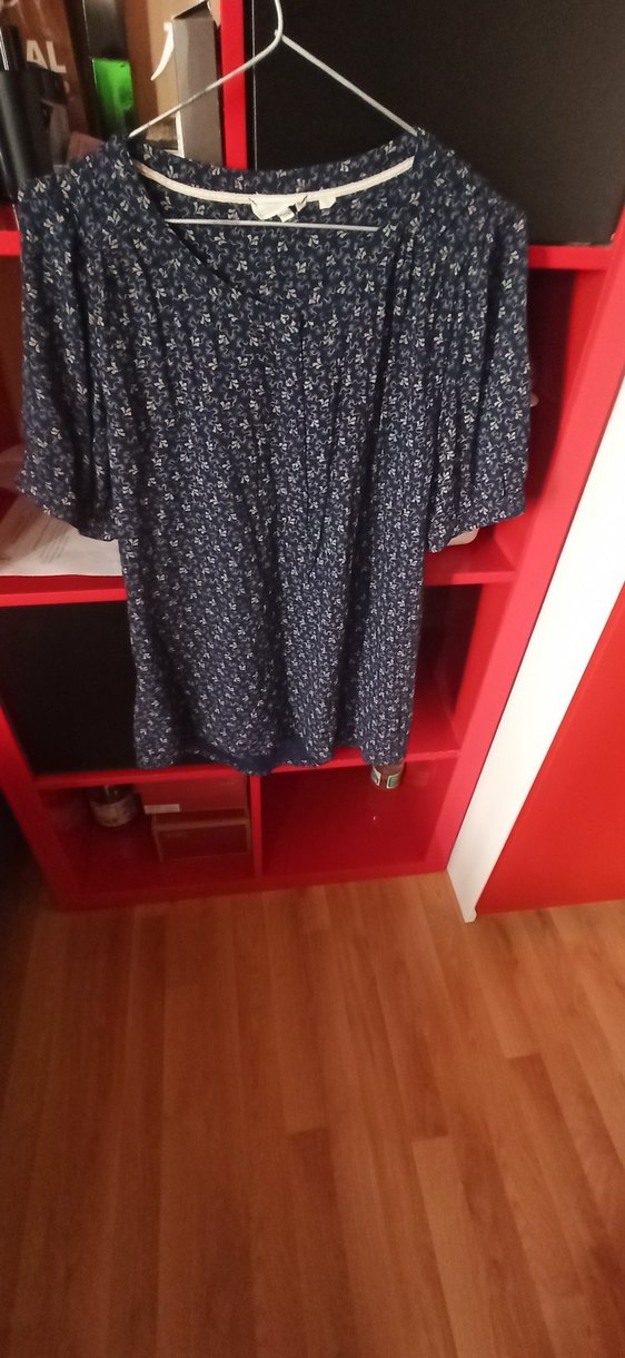 Bol kesim, kısa manşet detaylı kol hamile tunik. V yaka ve düğmeli detaylara sahip. Koyu mavi tie-dye deseniyle bohem tarzda, günlük kullanıma uygun.