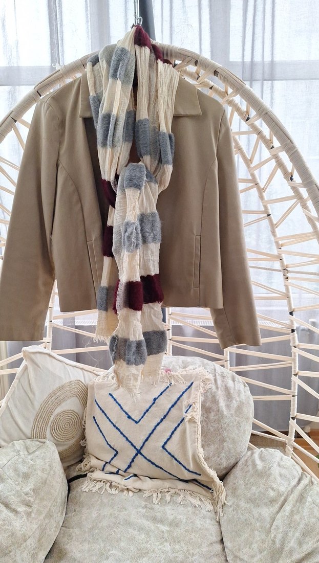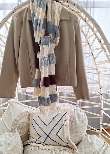 Camel renginde, uzun boy ve regular fit ceket. Notlu yaka, örme dokusu ve askılı kollara sahip, günlük kullanım için uygun. Batik desenli, retro tarzda. coton marka atki hediye edicem sadece atkinin fiyatı bile 250 lira su anda kolunda hafif sıyrık var kullanıma hiç engel değil.
