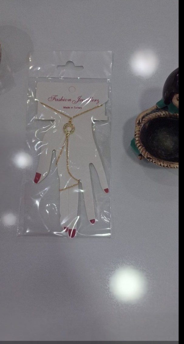 Altın renginde, boncuklu detaylara sahip bohem tarzı el zinciri. Düğün ve günlük kullanıma uygun, hafif desenli ve retro görünümlü.